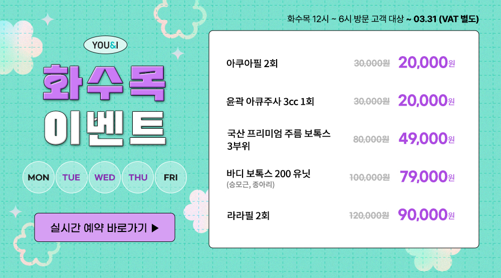 ※ 비급여 항목에 한해서 할인 적용 | 모든 이벤트 VAT 별도